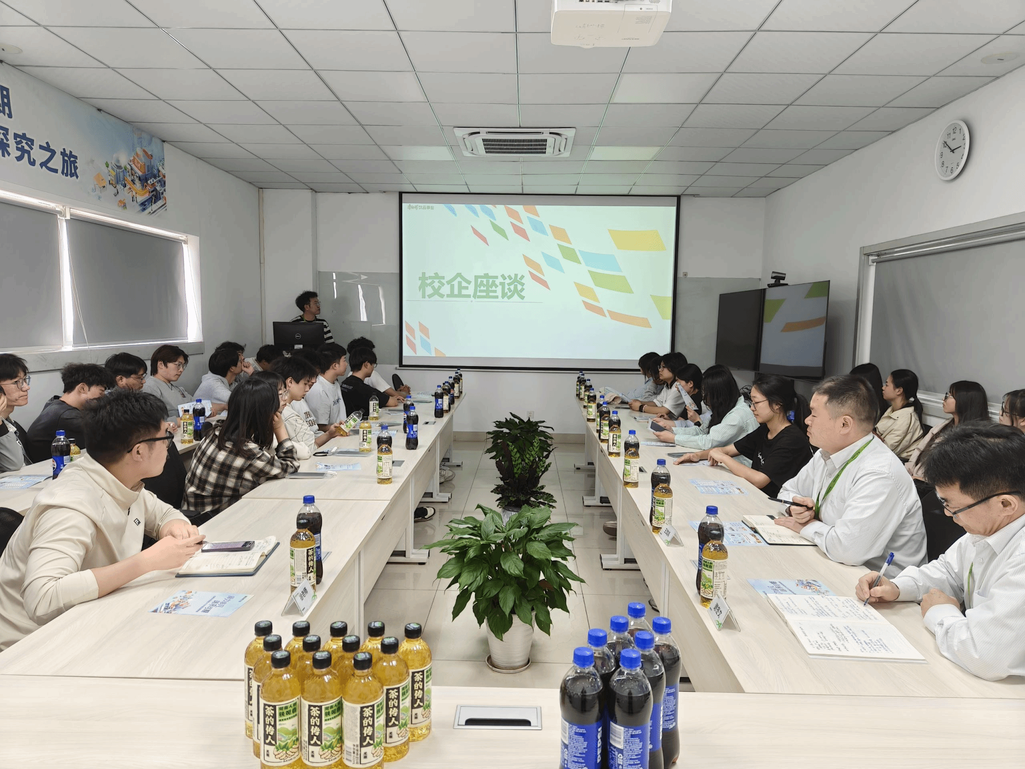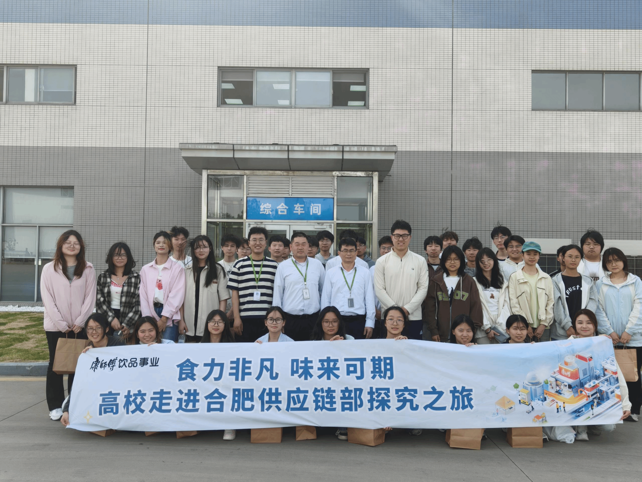 为进一步深化校企合作、拓宽毕业生就业渠道,推动应用型人才培养, 4月16日,威廉希尔体育食品质量与安全党支部书记徐浩然带领30余名团学骨干赴康师傅控股旗下核心企业—合肥顶津食品有限公司开展校企学习交流活动。本次活动旨在搭建校企合作平台,探索产学研协同创新模式,助力员工职业发展。康师傅合肥顶津食品有限公司合肥品管处处长谢冬文、检验科科长王龙兵、校企招聘专员时义杰参加此次学习交流活动。