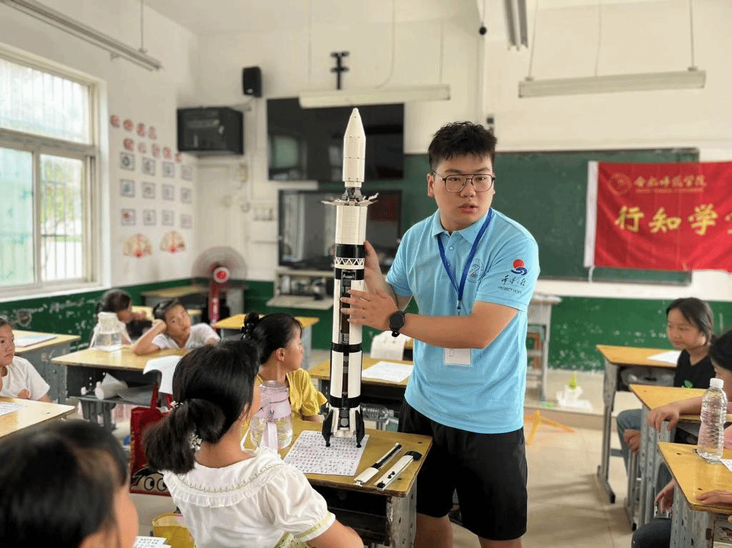 威廉希尔体育的王庄村行知学堂的小先生在驻村书记李万成的指导下,认真谋划学堂内容,积极打造逐梦科普等特色课程,激发孩子们的好奇心和想象力,为孩子们的未来蓄能。逐梦科普课程分为三个阶段,首先是小先生介绍我国航天空间站的构造,利用空间站的模型和视频向孩子们展示了近年来我国取得的航天成就。其次是介绍火箭的发射原理,利用火箭模型,对火箭的各个部位进行详细的介绍。最后,孩子们在了解了基本的空气动力学和飞行力学等方面的知识后,在小先生们的帮助下,孩子们利用手中的废旧塑料瓶,一个水火箭模型组装完毕。