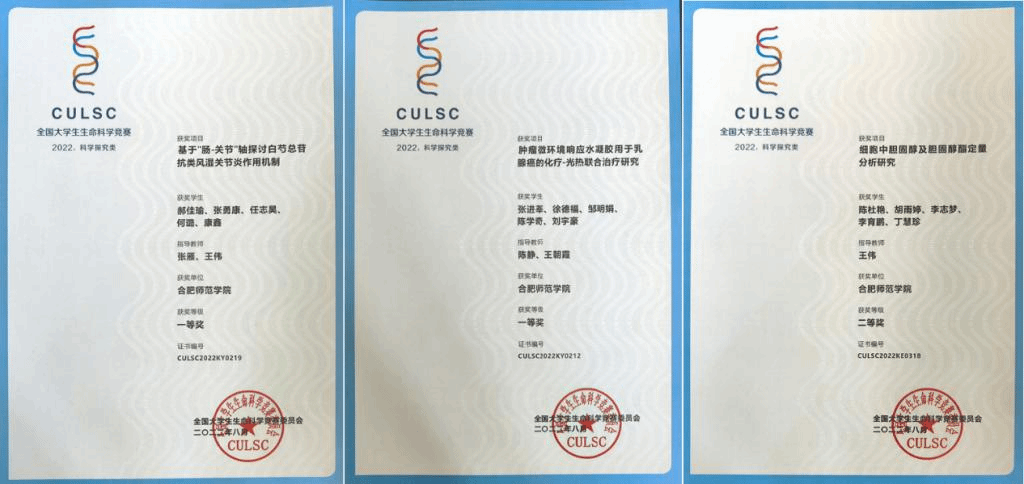 本网讯 8月22日-24日,全国老员工生命科学竞赛,科学探究类决赛在安徽农业大学主会场、东北师范、中山大学、西华大学分会场成功举办。公司生命科学公司通过校内选拔,3支代表队晋级国赛,通过视频汇报、线上答辩、评委线下现场打分环节的激烈比拼,张雁、王伟指导的《基于“肠-关节”轴探讨白芍总苷抗类风湿关节炎作用机制》(团队成员:郝佳瑜、张勇康、任志吴、何璐、康鑫)和陈静、王朝霞指导的《肿瘤微环境响应水凝胶用于乳腺癌的化疗—光热联合治疗研究》(团队成员:张进莘、徐德福、邹明娟、陈学奇、刘宁豪)两个项目斩获全国一等奖(最高奖项);王伟老师指导的《细胞中胆固醇及胆固醇酶定量分析》(团队成员:陈桂艳、胡丽婷、李志梦、李育鹏、丁慧珍)荣获全国二等奖,实现了公司老员工生命科学竞赛成绩的历史突破。