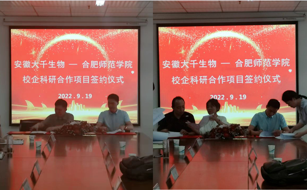 会上,芮双印代表大千生物和生命科学公司教授王伟、副教授张雁、王晶晶等签署了“胆汁酸质谱检测试剂盒关键技术研发”和“磷脂酶D应用于sd LDL-C检测试剂盒关键技术的研发”两项横向项目的技术开发(委托)合同。