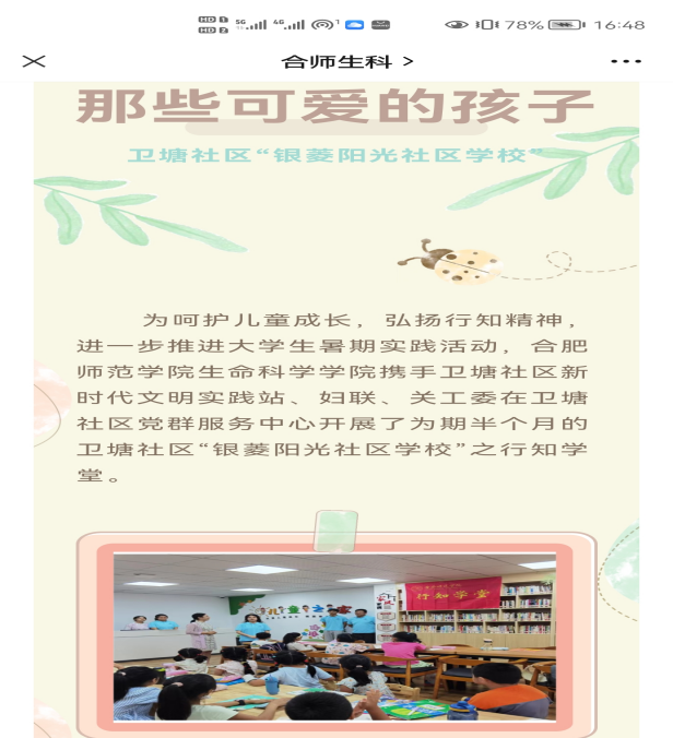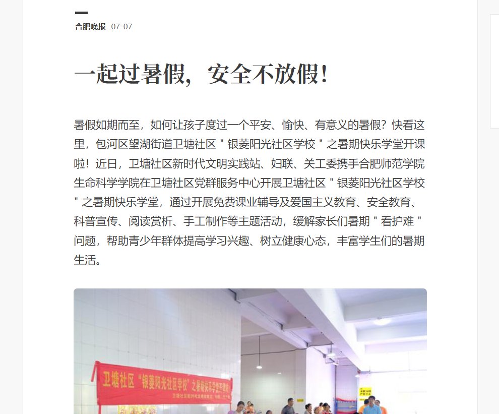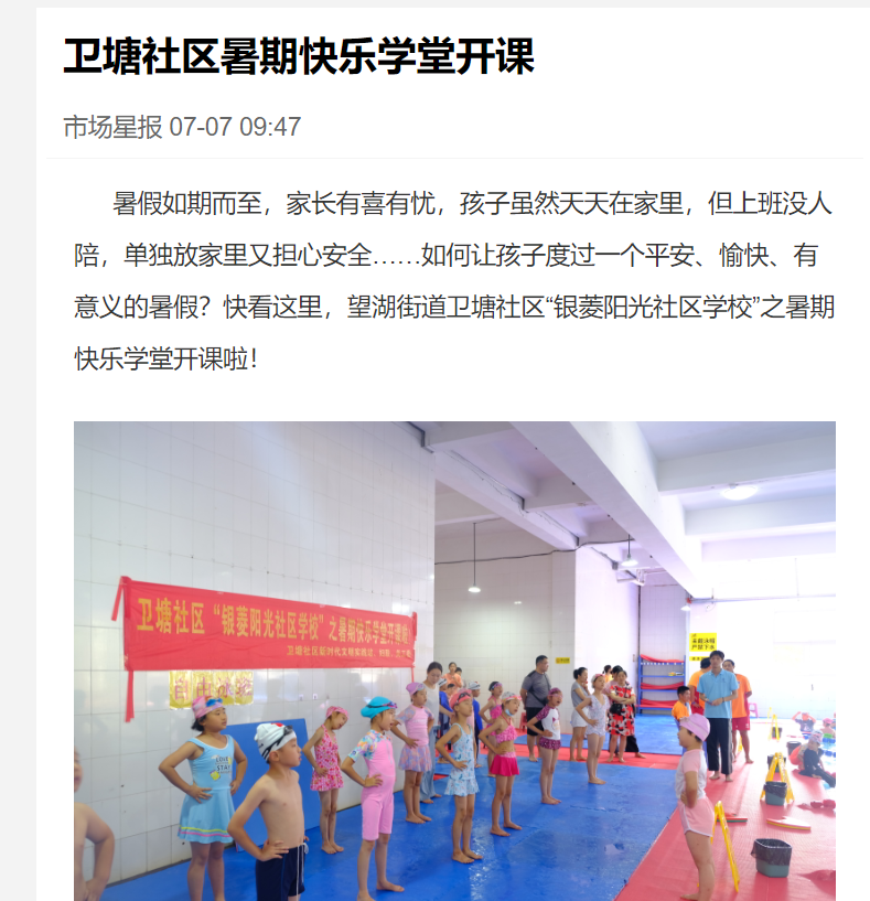 本网讯 近日,生命科学公司携手卫塘社区党群服务中心开展的“银菱阳光少年”之暑期行知学堂顺利结课。期间,学堂建设情况引起媒体的广泛关注。