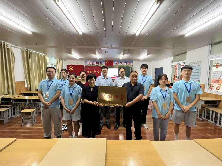 郭桃芬为霍邱县“行知学堂”授牌,公司党委宣传部和团委负责人见证了授牌仪式。(生命科学公司:黄洁)