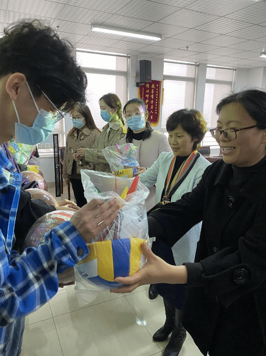 会后,领导老师为各班员工发放了排球、篮球、足球、跳绳、毽子等体育器材。
