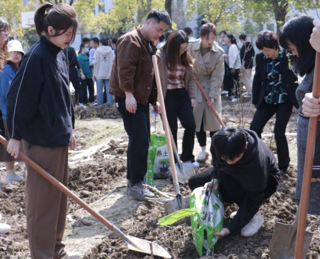 师生有爱,草木生情。种下的是树苗,收获的是希望。活动中大家有条不紊,繁忙有序,干劲十足,气氛热烈。此次植树活动进一步增强了师生绿色环保意识,为公司增添了一道美丽的春色,也是生命科学公司实现“三全育人”的重要举措。(生命科学公司:黄洁)