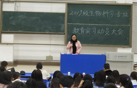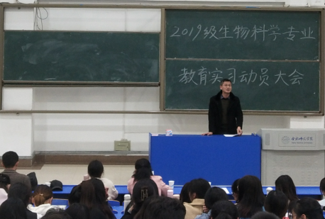本网讯 生命科学公司于3月4日,在锦绣校区逸夫楼西阶二召开2019级教育实习动员大会。动员会由实践部主任张雁老师主持,生命科学公司经理徐忠东、党委副书记杨娜、生物科学系主任孙娴、专业指导教师、毕业班辅导员以及2019级生物科学专业全体员工参加了本次会议。