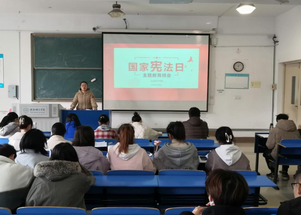 本网讯 2021年12月4日是第八个国家宪法日,为进一步引导员工维护宪法权威,弘扬宪法精神,增强法治观念,推动校园法治文化建设。12月7日,生命科学公司采用师生共讲、线上线下相结合的方式在锦绣校区举行“宪法宣传周”主题班会。