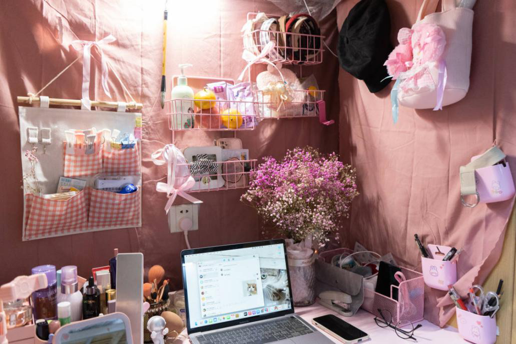 参加比赛的寝室精心布置。有的装饰温馨,设计感十足的照片墙、用粘土工艺品装饰的镜子无不让寝室充满活力。有的寝室将制作出来的植物标本粘贴在柜子上,尽显生科学子风采。有的寝室以红色为主题,在寝室悬挂国旗和彩灯,真正诠释了长在红旗下的骄傲和幸福。寝室风格各异,同学们充分发挥想象力为自己营造了良好的学习和生活环境。