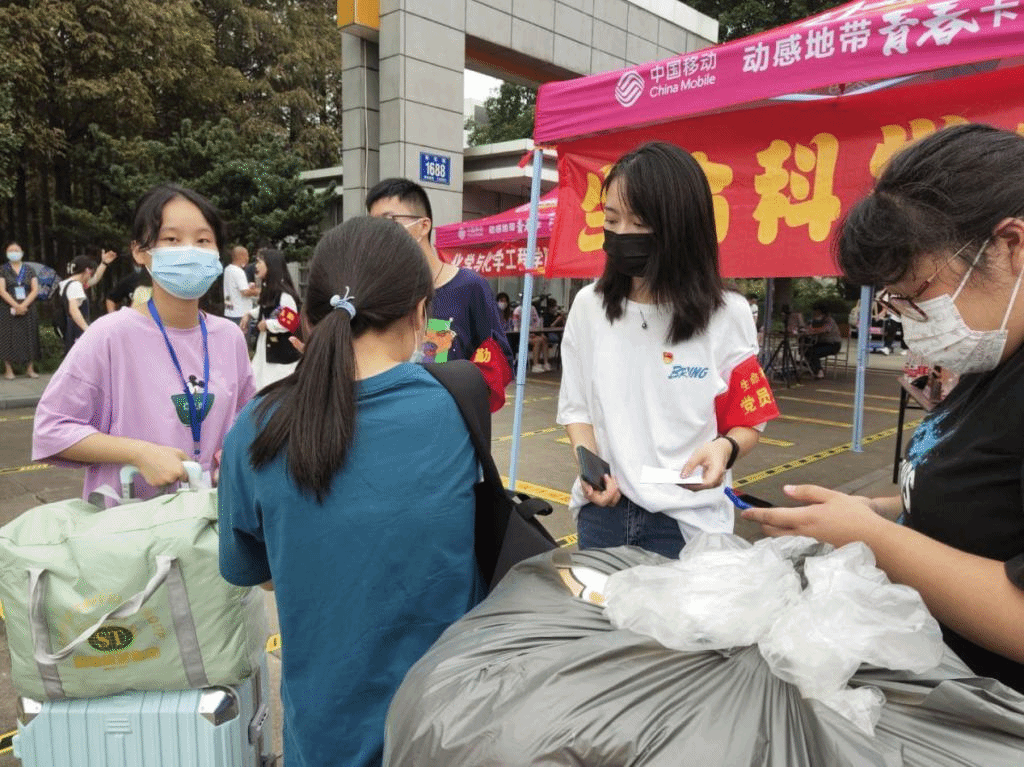 上午七点多,新生陆续报到,迎新工作如火如荼,领导班子亲临现场,指挥协调迎新工作,员工党员、员工干部以及志愿者们忙碌的身影穿梭在校园的各个角落,他们热情有加、井然有序的引导新生报到、做核酸检测、帮助新生搬运行李、耐心回答新生和家长的疑问。辅导员带领班助们仔细核实新生入学信息、发放校园卡、安排住宿等。整个报到工作,忙而不乱,稳中有序,青春的歌声在校园上空飘扬,青春的气息涌动在校园的各个角落。