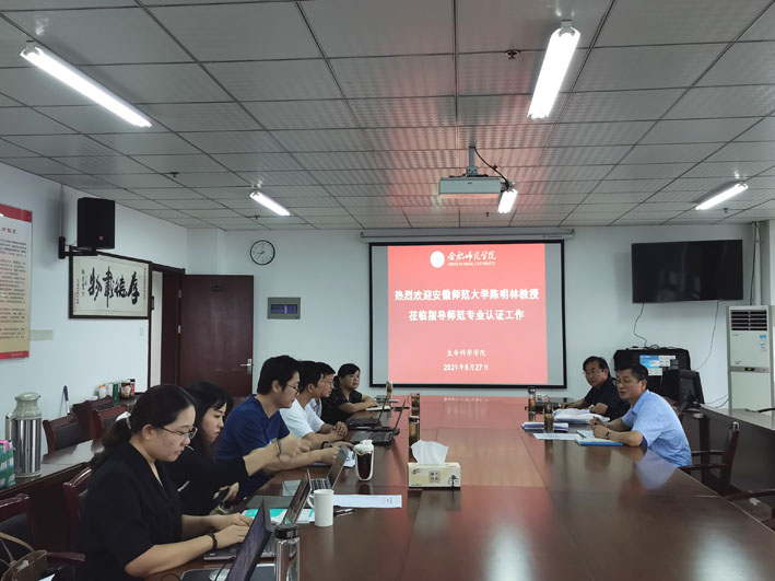 本网讯 为进一步找准专业认证准备工作中存在的问题,顺利迎接认证专家组进校考察,8月27日上午,安徽师范大学陈明林教授应邀到生命科学公司指导生物科学专业认证工作。会议在行知楼1502举行,经理徐忠东、副经理朱桂兰和全体师范专业任课教师、实验员等参加了会议。