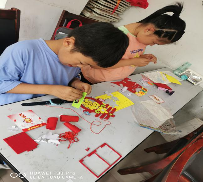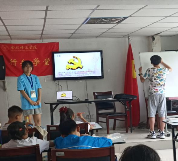 开班第一课,为深入贯彻“永远跟党走,奋进新时代”的活动主题,让小学员们从小接受爱党爱国教育。“小先生”们查阅资料后,将手工、电影等与红色资源相结合,带领小学员们完成了一次又红又专的手工课程。随后,小先生根据自身特长在该社区陆续完成了英语口语、科学小实验等课程。