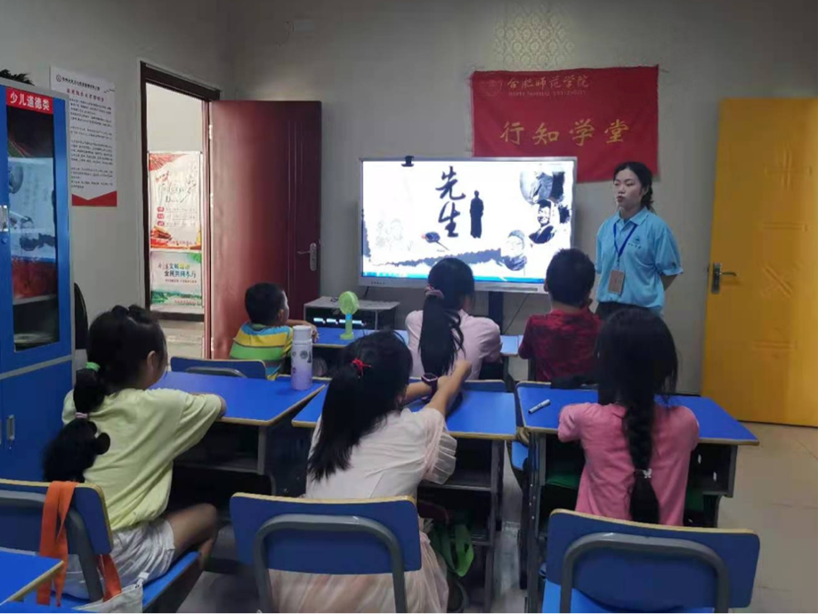 该学堂由2019级生物技术专业的徐欣荣、尤洁、钱雨欣、李琴四位“小先生”共同创办。四位来自无为的“小先生”一致决定将“行知学堂”带到家乡,小先生们根据自身特长爱好开设了暑期安全教育、党史教育、手工制作、音乐、趣味英语、绘画、朗诵会等多项趣味课程。小先生们提前谋划,制定了详细的活动计划,内容涵盖课业辅导、兴趣培养、情感教育、心理辅导、素质拓展等多方面,带给孩子们一个充实而有收获的暑假。