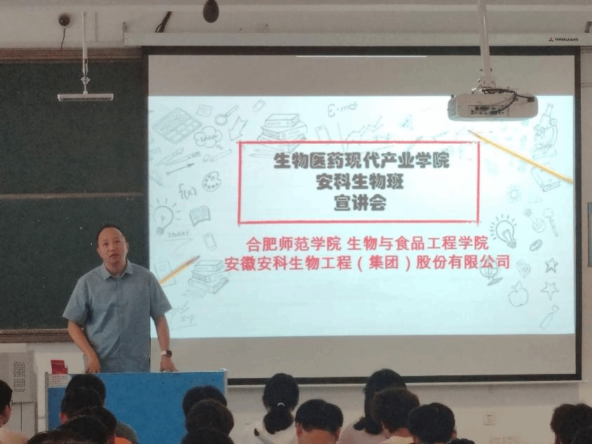 随后,陈金武详细介绍了现代产业公司在课程设置、团队力量、实践教学等方面情况,以及合作企业——安科生物的发展历史及现状,并就员工未来的就业前景和发展方向进行了深入剖析。他通过生动的案例和详实的数据,展示了现代产业公司在人才培养上的强大实力和创新能力。