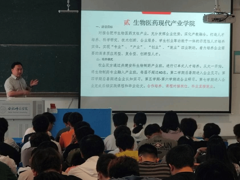 宣讲会伊始,王伟首先介绍了公司的发展历程和办学特色,阐述了生物医药产业是关系国计民生、经济发展和国家安全的战略性新兴产业,强调了生物医药人才需求的迫切性,鼓励同学们刻苦学习,早日实现人生价值。