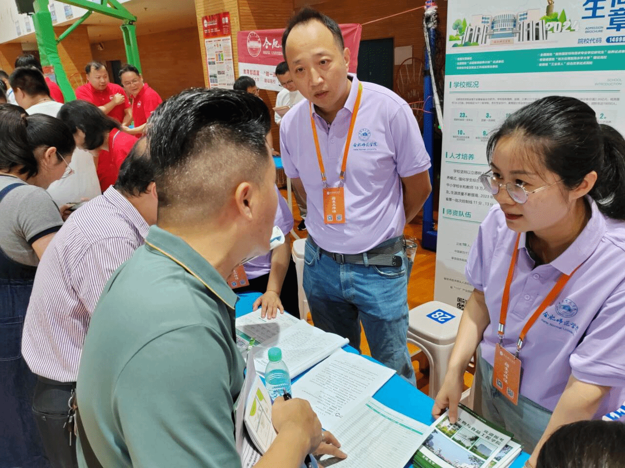 6月26日至6月27日,在公司朱桂兰经理和王伟副经理的带领下,由16位教师组成招生宣传工作小组,分别赴合肥四中、合肥七中、合肥十中、霍邱一中、霍邱二中、铜陵一中和铜陵中学等公司开展现场招生宣传活动,为考生家长提供了高水平和高质量的招生咨询服务。