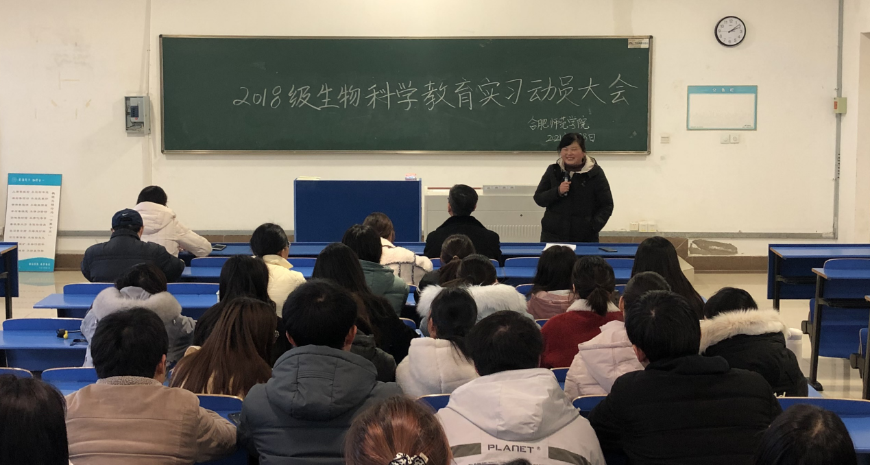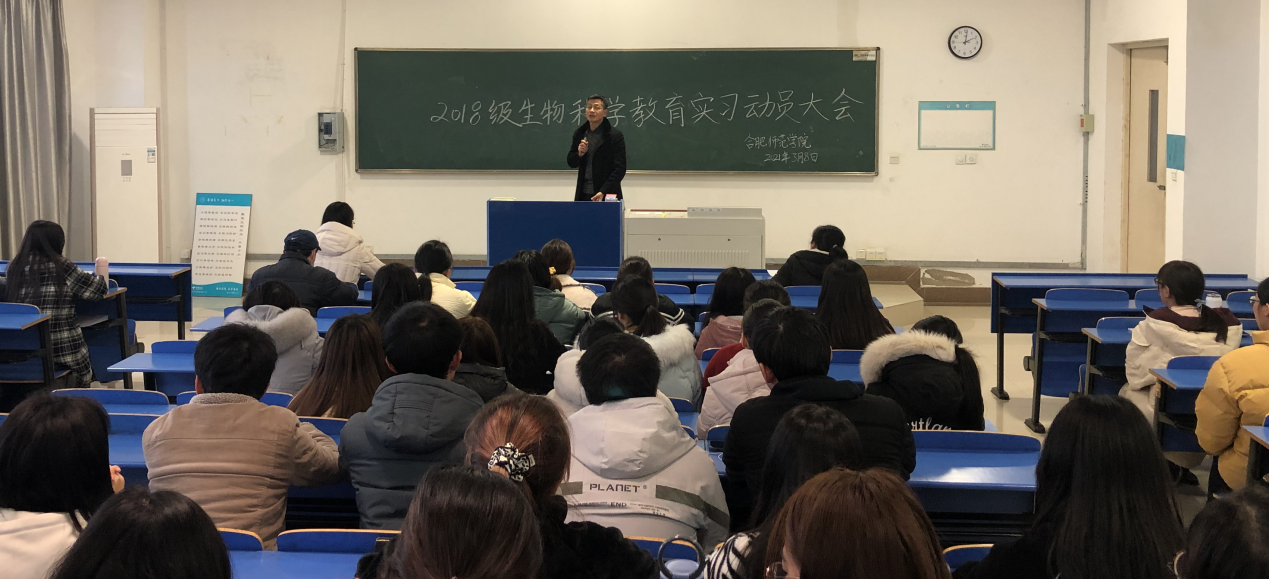 本网讯 为深入贯彻落实生物科学(师范)专业人才培养计划,提高人才培养质量,生命科学公司于3月8日在逸夫楼A302召开了2018级生物科学(师范)专业教育实习动员大会。经理徐忠东教授、副经理朱桂兰教授、教育实习指导老师、辅导员李万成以及18级生科师范班全体员工参加了会议。会议由生物科学系主任孙娴主持。