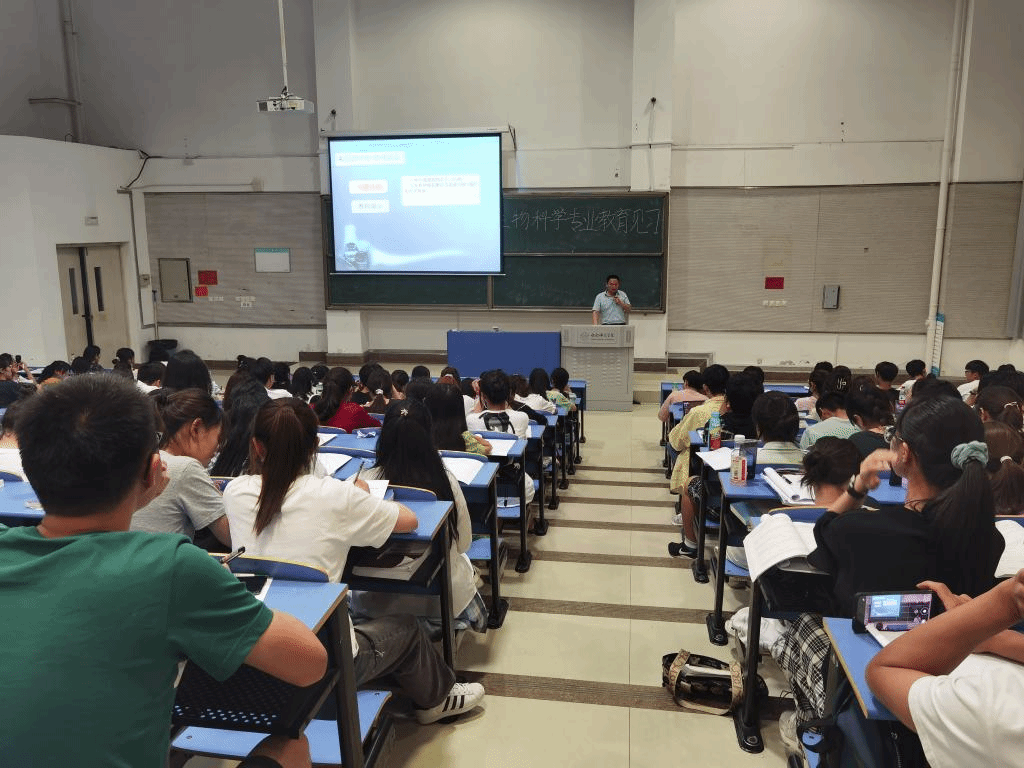 本网讯 为进一步了解基础公司产品及管理的实际情况,加强师范生对教师职业的深入了解,提高师范生的教学技能。根据生物科学专业人才培养方案及教学计划要求,生命科学公司于6月29日晚在逸夫楼西阶2教室举行了2019级、2020级生物科学(师范)专业教育见习活动。本次活动邀请了四十六中名师团队,分别是第四十六中学高级教师周龙清、宋慧、姚成龙、刘霄。活动由生物科学系教师徐慧敏主持,2019级、2020级生物科学(师范)专业全体员工参加。
