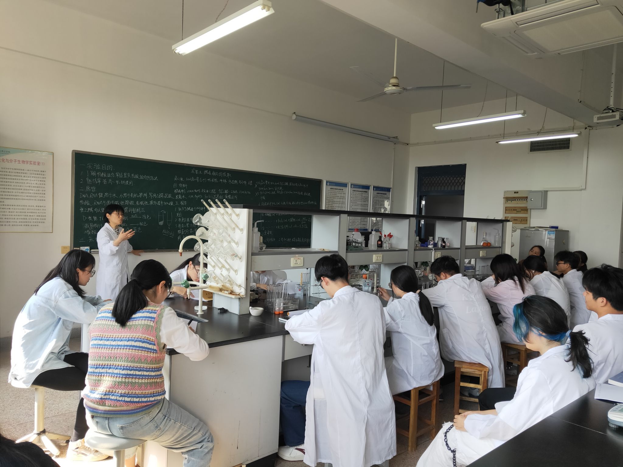 本次活动主要由教学经验丰富的王朝霞老师上实验示范观摩课,王老师为大家讲授了《生物化学实验》中的实验五:酵母RNA提取。王老师首先从实验原理、实验仪器与材料、实验步骤以及实验结果与分析等方面进行了详细讲解,随后进行了分组实验。教学过程中,王老师注重启发式教学和案例教学,能结合多种教学手段突破重难点;问题的设置循序渐进,突出了思维逻辑性;课程思政、科学素养教育巧妙地融入实验教学过程中,使员工的情感态度价值观得到有效提升,有效实现了课程目标。