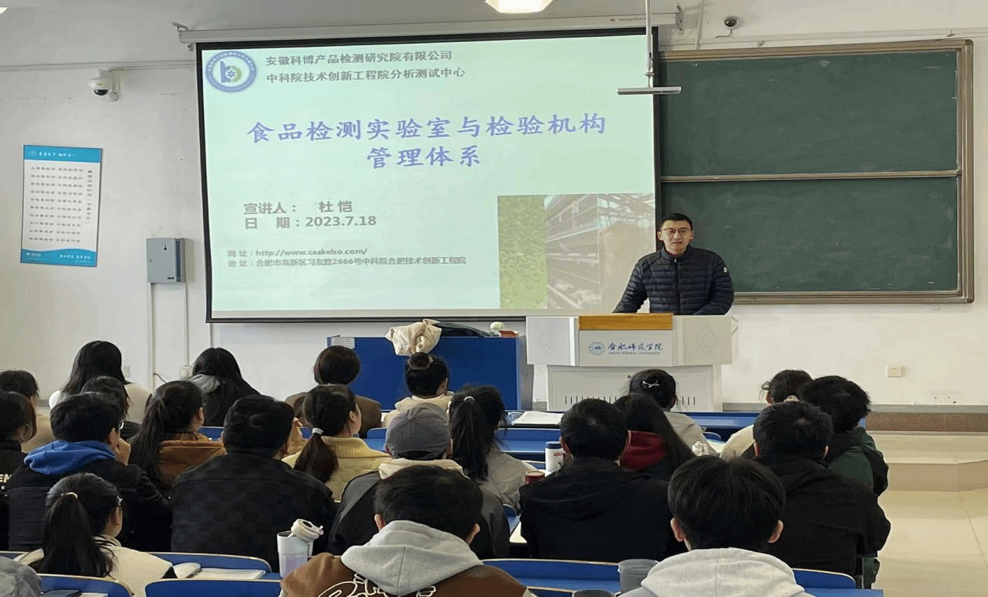公司邀请安徽科博产品检测研究院有限公司工程师杜恺,围绕“食品检测实验室与检验机构管理”专题进行了讲解,主要包括实验室管理理念与依据,实验室有关法律法规与规范性文件,实验室认可与检验检测机构资格认定等部分,在讲解过程中采取了三聚氰胺、砒霜门等案例进行了分析,深入浅出的对食品企业中实验室管理进行了讲授。同时,杜老师还结合今年正在科博检测研究院实习的员工实习情况与同学们进行了交流。