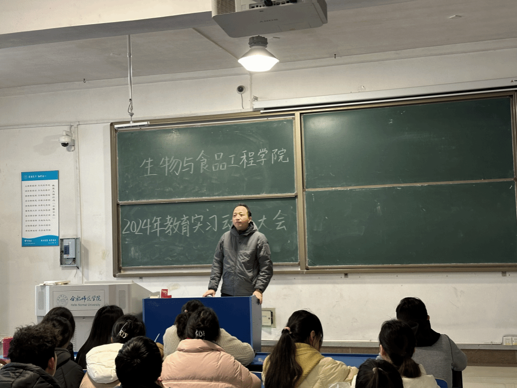 威廉希尔体育于2024年3月5日,在锦绣校区逸夫楼101教室召开2024年教育实习动员大会。动员会由实践部主任张雁主持,威廉希尔体育副经理王伟、生物科学系主任孙娴、各实习指导教师以及2021级生物科学专业全体员工参加了会议。