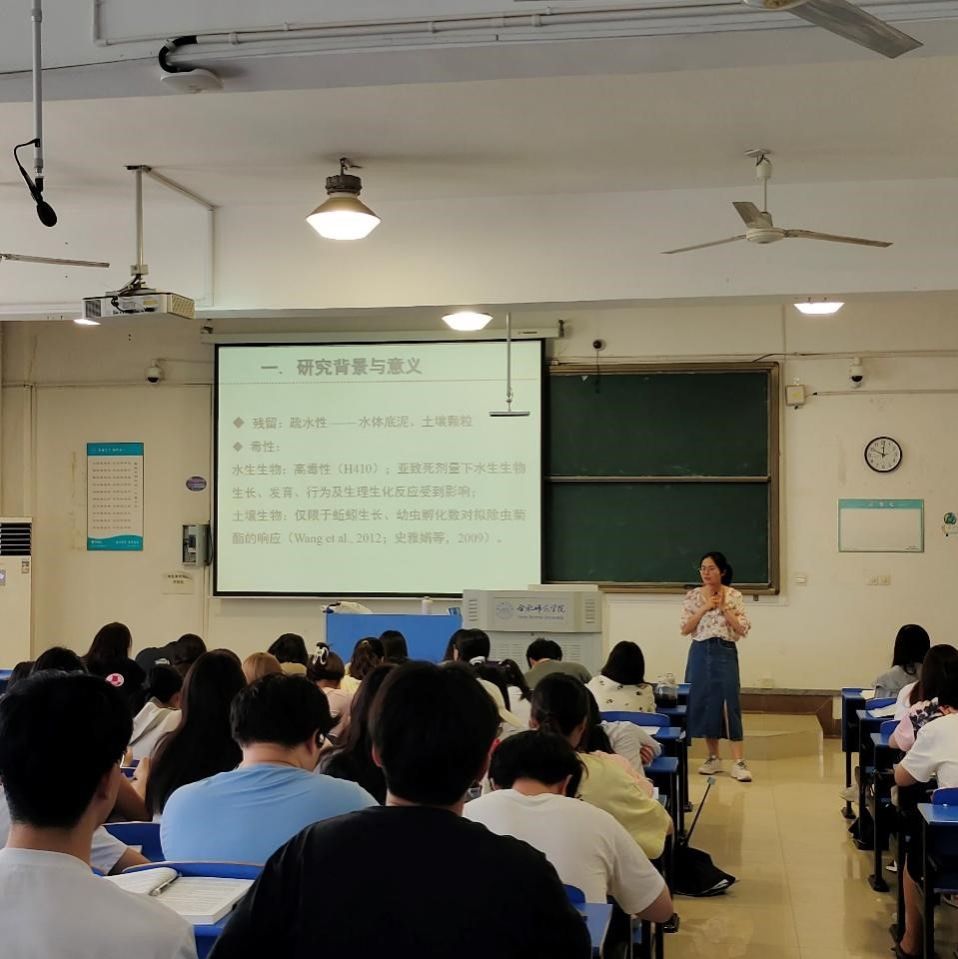李玲玲首先以生活中常见的拟除虫菊酯类农药,例如蚊香、驱虫剂引出该类农药的使用频率,紧接着以其课题组的研究方向,重点介绍了拟除虫菊酯类农药的研制途径、土壤暴露下的毒性效应,最后总结了该类农药生态风险评估的过程。通过讲座,李玲玲向同学们展示了生物制剂在农业、环境以及人类生存空间中的应用,同时介绍了评估生物制剂对环境生物与人体健康的风险评估流程。