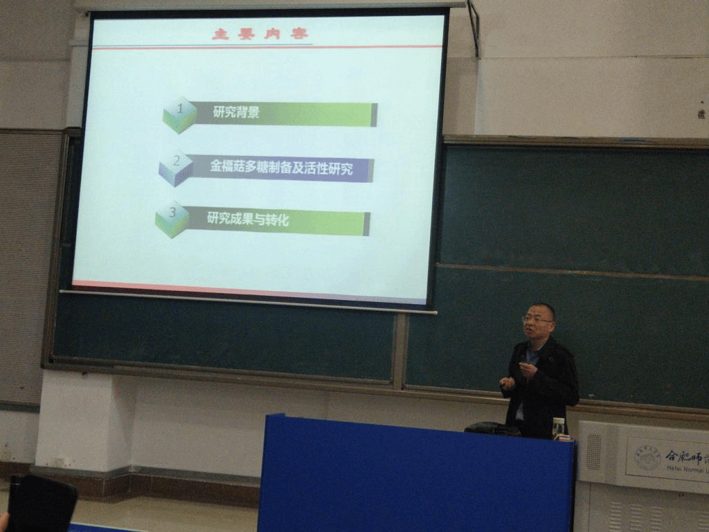 本网讯 11月18日下午,应生命科学公司邀请,安徽大学教授、博士生导师陈彦在逸夫楼西阶二教室,为生科院师生作了题为《金福菇多糖的高效制备与应用》的学术报告,生科院师生齐聚一堂聆听了报告,报告由生命科学公司经理徐忠东教授主持。