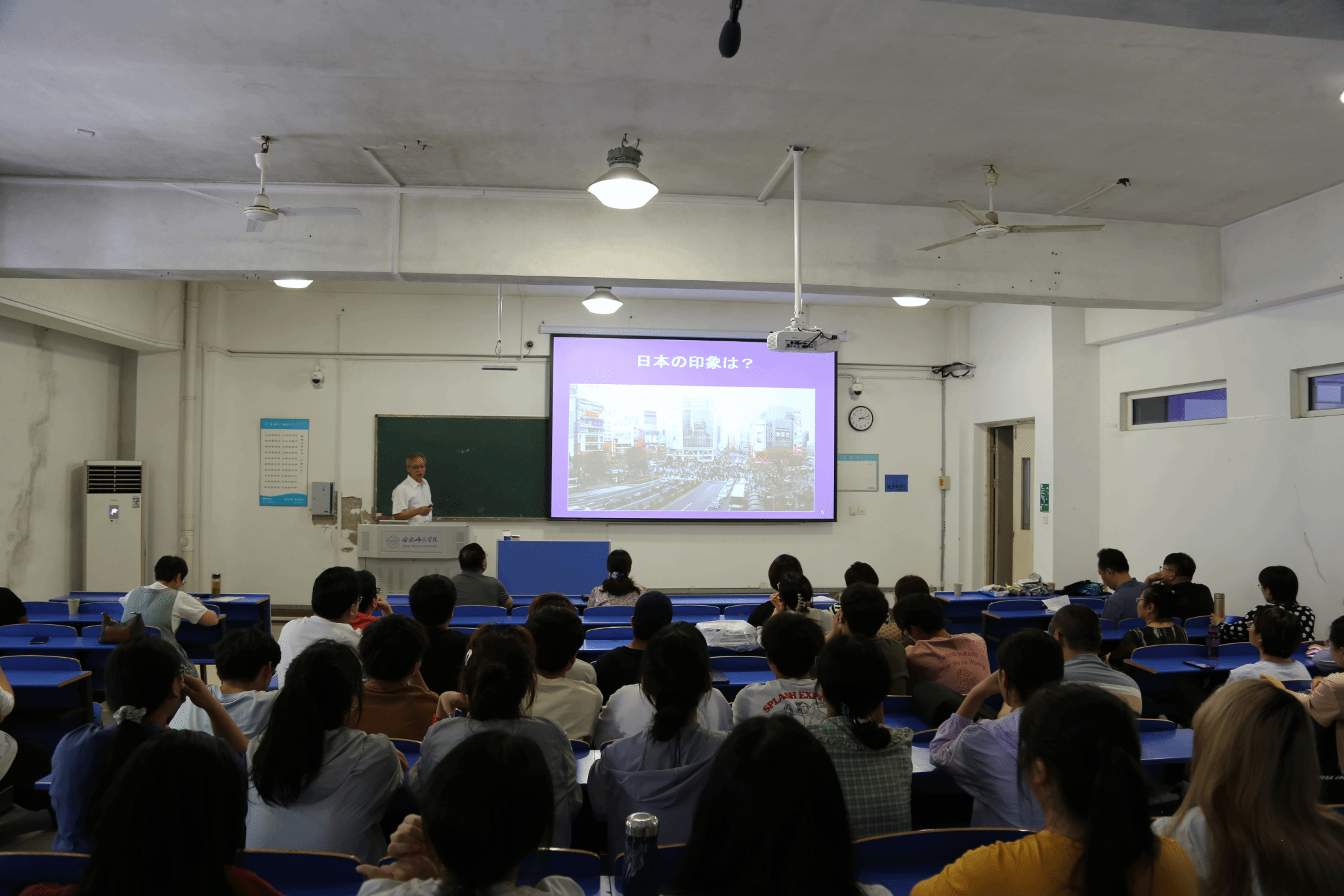 香取茂男先生以“日本农业”为主题,重点介绍了日本的气候条件、水果消费习惯和集约农业生产模式下的果树栽培特点等内容。讲座结束后,香取茂男先生与在场师生就梨树修剪及如何延长葡萄货架期等问题进行了互动交流。