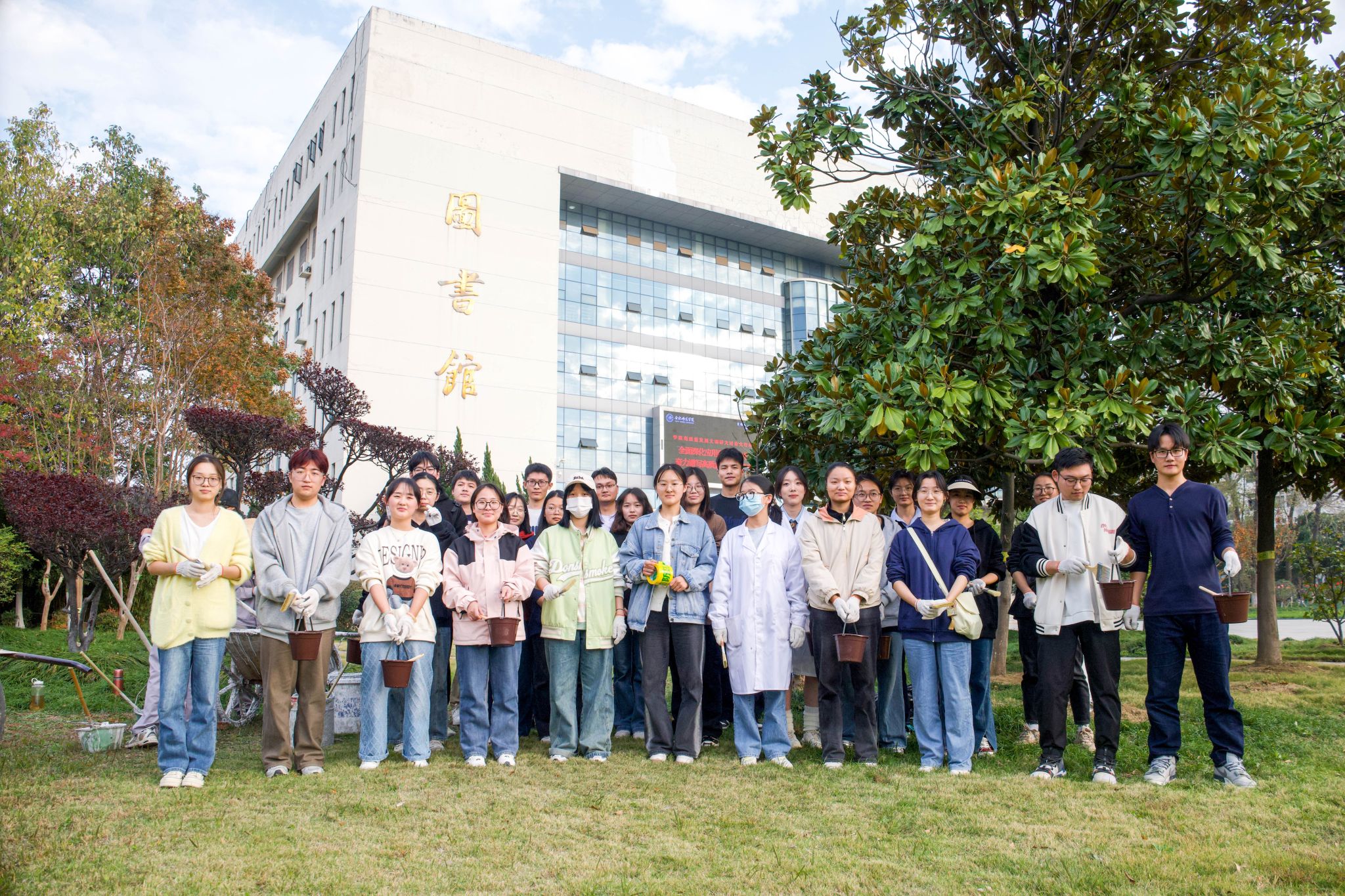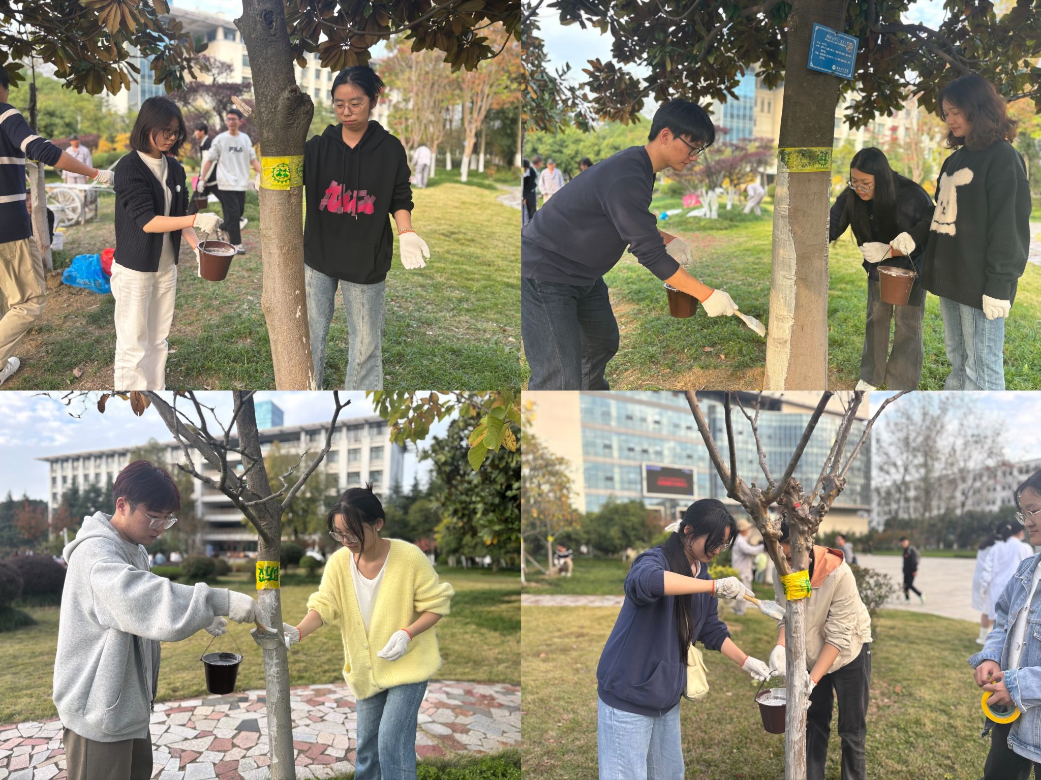 同学们分成8组,对公司树木树干刷涂石灰水,清洗植物挂牌,清除校园垃圾。活动现场,同学们分工明确,配合默契,井然有序,发扬了不怕脏不怕累的志愿服务精神,他们认真劳作的身影成为了校园里一道道靓丽的风景线。