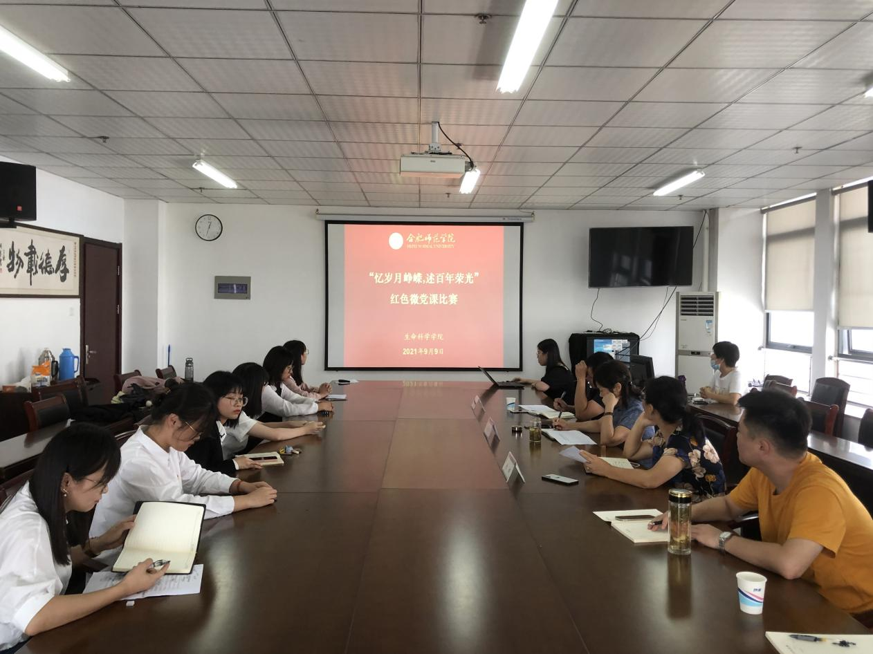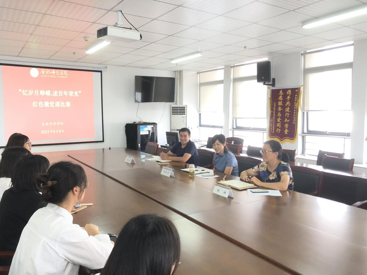 本网讯 为深入推进党史学习教育,全面落实《生命科学公司关于“十个一”红色做到“两个维护”方案》,教育引导师生党员深入了解党的光辉历史、感悟党的初心使命、领会党的创新理论、传承党的红色基因,9月9日中午,生命科学公司党委在行知楼1502举行“忆岁月峥嵘,述百年荣光”红色微党课比赛。本次比赛面向全体师生党员,师生党员同上一堂微党课。比赛由公司党委书记郭桃芬、副书记杨娜、公司党委组织部组织科科长吴世红担任评委,由党政秘书黄文婷主持。