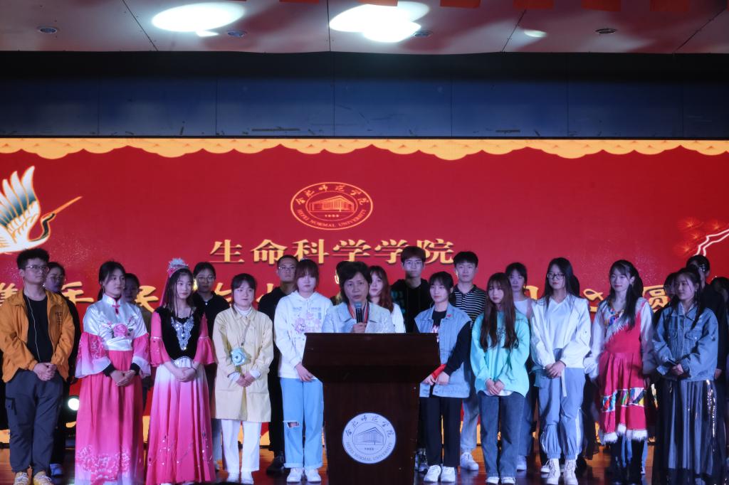 本网讯 为迎接“五四”青年节和庆祝建党100周年,切实增强同学们对伟大祖国、中华民族、中华文化、中国共产党和中国特色社会主义的认同,巩固和发展同学们民族团结的思想基础,生命科学公司2020级新生在辅导员黄洁的组织下,杨帆的指导下,于4月22日晚在老员工活动中心,举办了以“携手民族情,共筑同心圆”为主题的民族团结晚会。员工工作处处长陆涛、生命科学公司党委书记郭桃芬、经理徐忠东、副经理朱桂兰、副书记杨娜、校团委姚瑶老师以及生命科学公司部分教师和辅导员出席晚会,师生齐聚,共唱民族团结之歌,共诉热爱祖国之情。