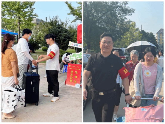在迎新现场,支部师生党员佩戴“红袖章”,热情接待新生,帮忙运送行李,介绍校园,引导新生办理各项入学手续……温暖的笑容、真诚的服务、耐心的讲解、热情的帮助,在迎新现场构筑起一道道亮丽的红色风景线。