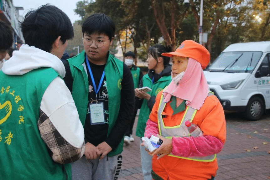 威廉希尔体育举办的“凌晨六点半,送给平凡的岗位,不平凡的你”志愿服务活动于11月12日和12月3日凌晨6:30,在锦绣社区天门湖文化广场举行。志愿者们为环卫工人送上暖心早餐,并与他们一同打扫街道,体验环卫工人的辛勤劳动。