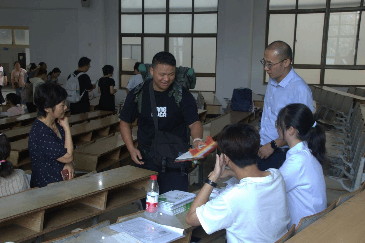 报到现场,新生班助分工明确、各司其职,耐心地为新生办理报到手续,帮助登记相关信息、发放校园卡,并告知校园卡如何使用。