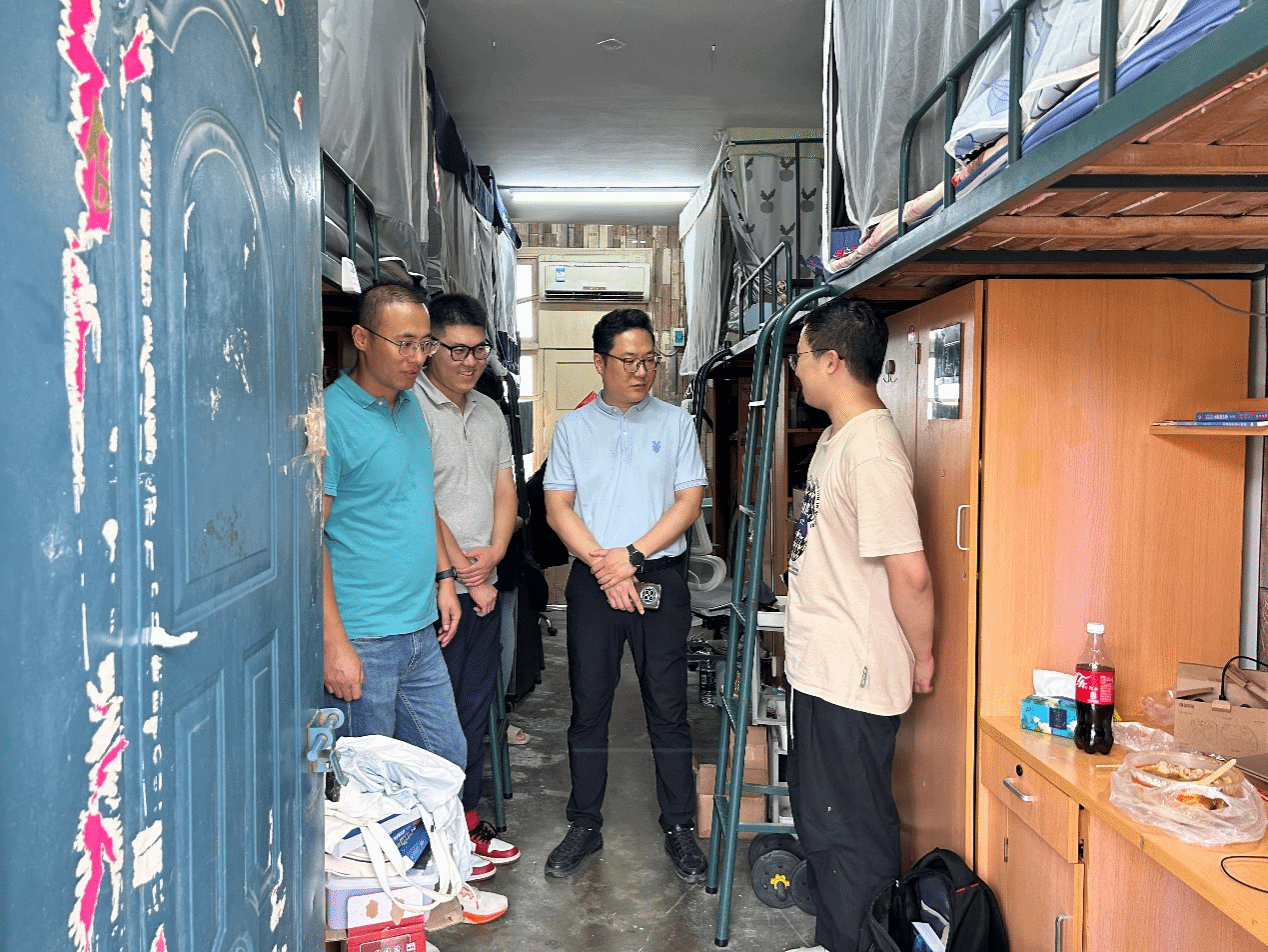 为深入了解新学期员工返校情况和思想动态,确保新学期工作安全、有序、平稳进行,9月1日中午,公司党委书记马喆、副书记李万成以及辅导员老师共同走访员工宿舍。