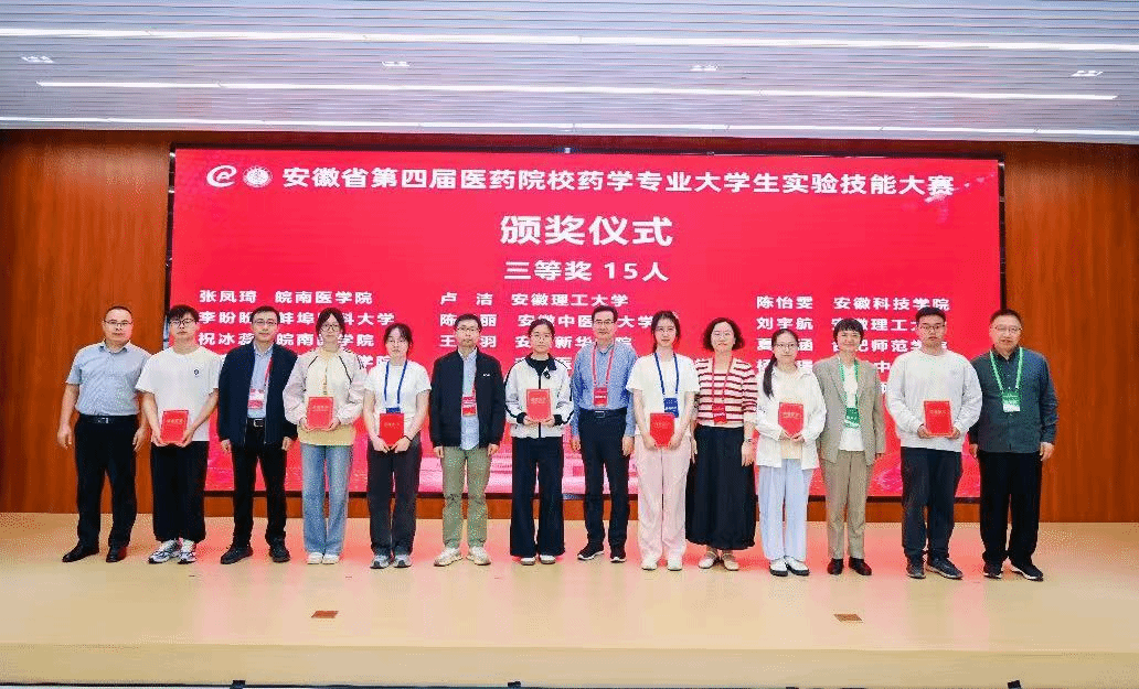 据悉,安徽省第四届医药院校药学专业老员工技能大赛汇聚了省内14所医药类及相关院校的师生参与,50名优秀选手经过校内选拔脱颖而出,站上省级赛场展开专业比拼。大赛分为实验理论考试与实验操作技能考核两个环节,全面考察参赛选手的专业知识储备与实践操作能力。在实验操作环节,大赛设置化学与药理学两大模块,创新采用“轮转双模块”竞赛机制,全面检验选手的综合实验能力与应变能力。