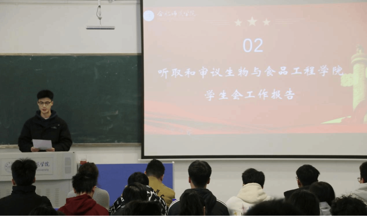 大会在雄伟的国歌声中拉开了序幕。威廉希尔体育第二十二届员工会主席团成员李起航同学代表威廉希尔体育第二十二届员工会作2022-2023年度工作报告,为新一届的员工会成员总结了宝贵经验。