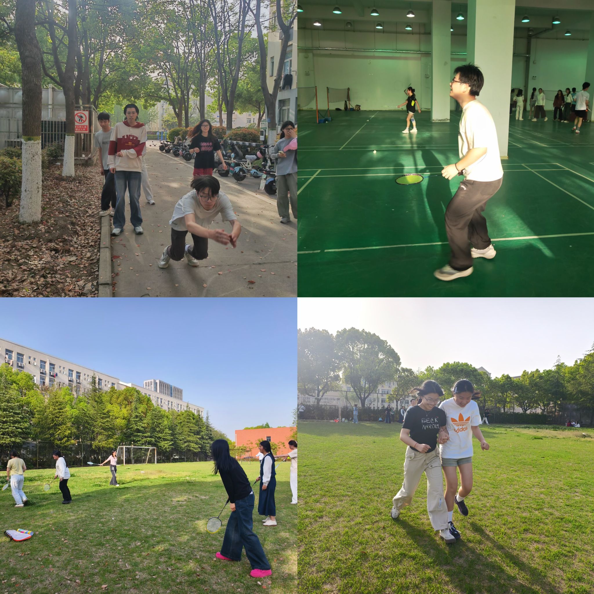 下午4点,运动会正式拉开帷幕。首先进行的是“跳绳比赛”,同学们身轻如燕,灵活跳跃,展现了出色的协调性和耐力;随后,“羽毛球对决”点燃了大家的竞技热情,选手们挥拍如风,配合默契,引来阵阵喝彩。在“两人三足”项目中,搭档们肩并肩、步调一致,齐心协力冲向终点,既考验了团队协作能力,又增添了无限欢乐。最后的跳远比赛中,同学们奋力一跃,用矫健的身姿诠释了青春的活力与激情。
