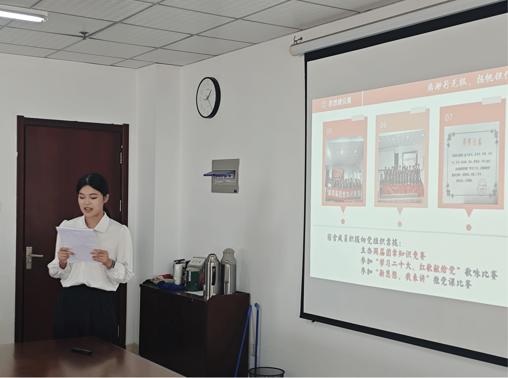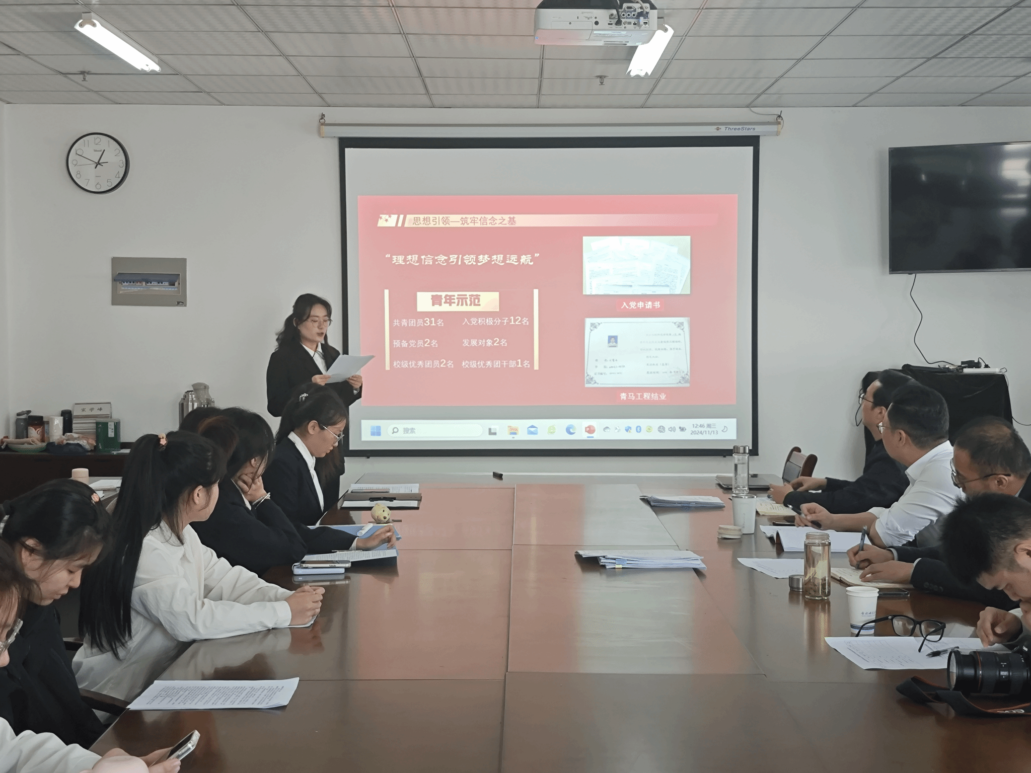 汇报会上,5个班级和6个宿舍共11个员工先进集体代表通过PPT的形式,就专业学习、社会实践、文化创建、荣誉收获等方面,充分展示了班级、宿舍以在2023-2024学年优良学风创建过程中所取得的丰硕成果。同学们准备充分、汇报精彩,评委老师们结合支撑材料和现场汇报评分。最终,评选出2022级生物制药班、10栋213宿舍分别作为公司优秀班级、宿舍参加公司“十佳”优良学风评选。