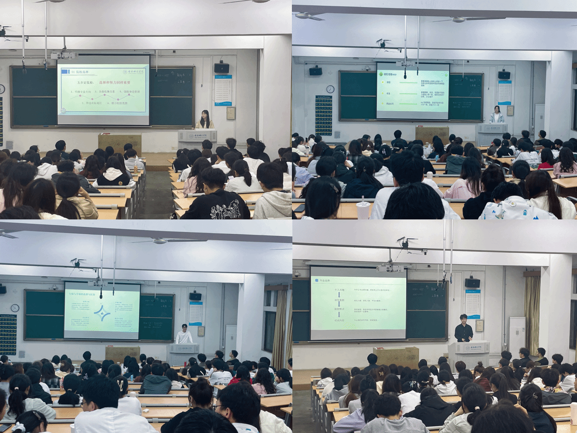 在经验分享环节,夏涵、项子鑫、肖阳、程小兵、宋常胜分别结合自身备考经历,围绕考研全过程为同学们进行了深入分析和经验分享。他们从院校选择、复习规划、应试技巧、心理调适等多个维度展开讲解,重点剖析了如何科学择校、高效复习专业课、调整备考心态以及获取优质备考资源等关键问题。