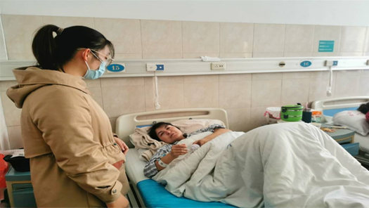 麦丽喀木因身体原因于上周在医院做了手术,住院期间,辅导员高欢前往病房看望,仔细询问了手术情况和医生建议,鼓励她积极配合医生治疗,早日康复回到公司。