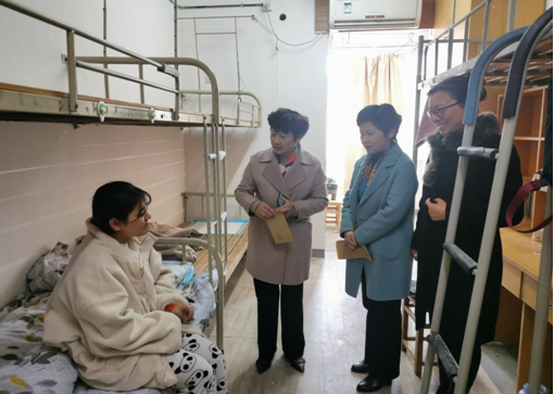 本网讯 12月3日上午,校员工处处长陆涛、生命科学公司党委书记郭桃芬、党委副书记杨娜以及辅导员高欢一行前往员工寝室,看望慰问2019级生物科学师范1班的新疆籍生病员工麦丽喀木。