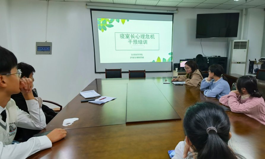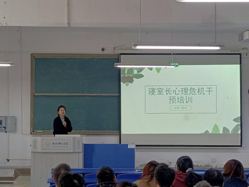 会上,辅导员们分别从心理危机概述、识别、常见干预误区、支持资源等方面向寝室长们宣传了心理健康教育相关知识,并通过生动的科普视频为同学们介绍生活中常见的心理健康疾病类型,提醒大家,若发现同学中有类似行为表现和症状的需立即上报辅导员。同时,辅导员们向大家介绍了一些常见的心理干预方法,可通过共情、耐心聆听等方式进一步了解同学内心世界,在一定程度上缓解同学的心理压力,以便于掌握同学的心理状态,做到及时干预。