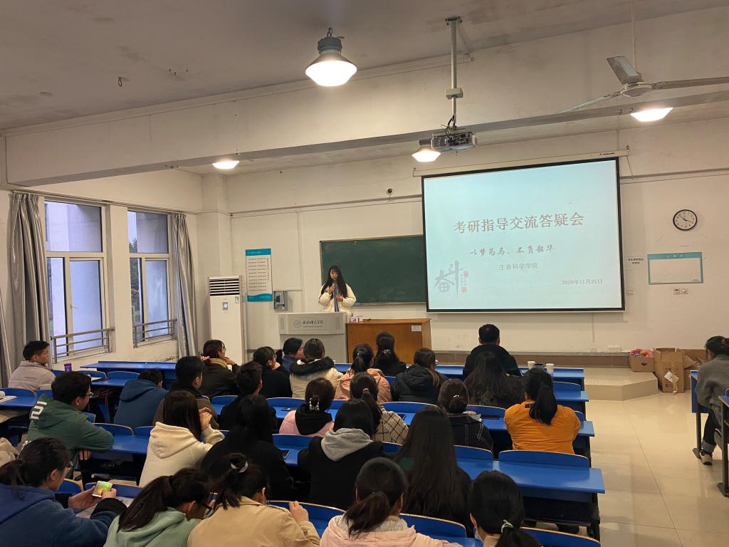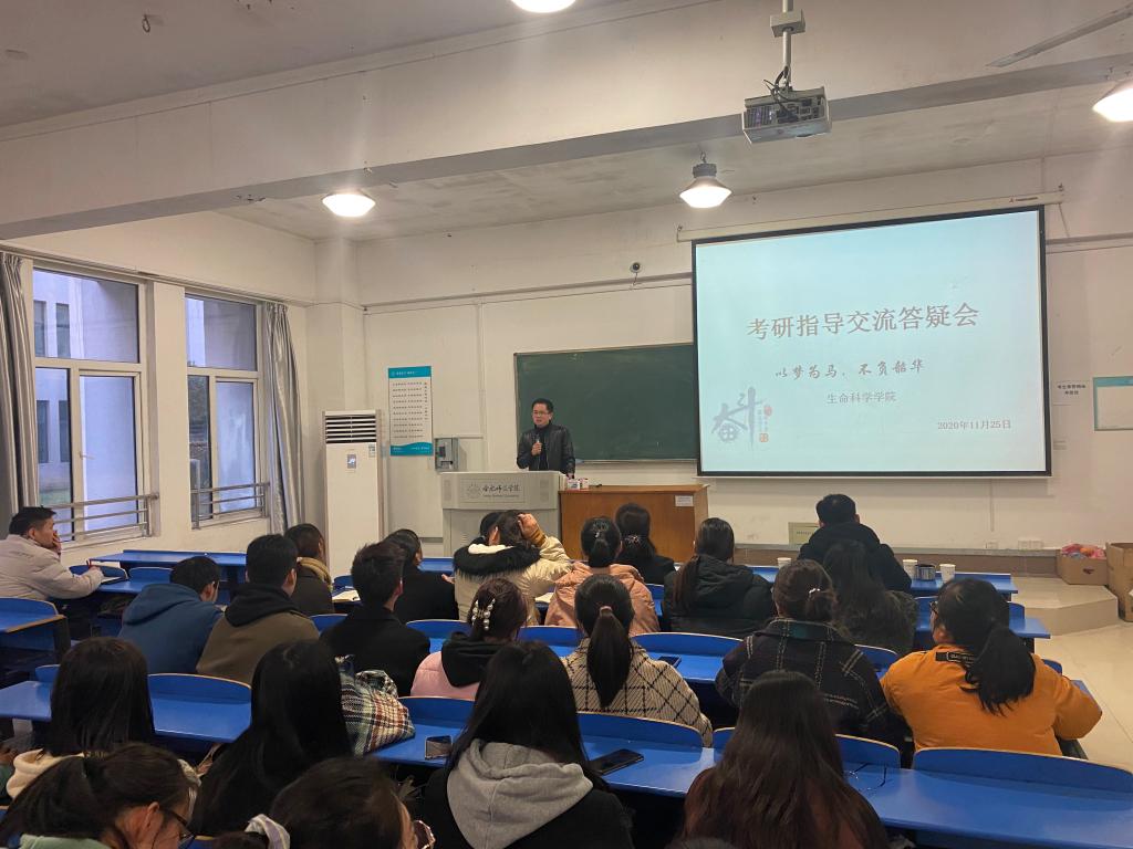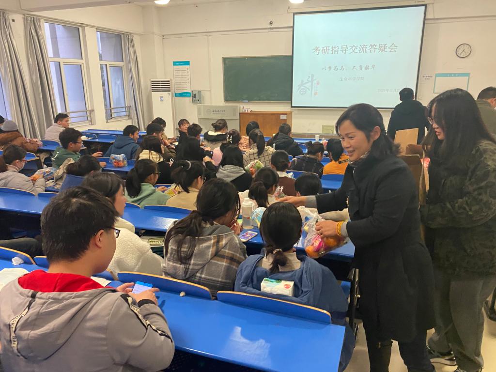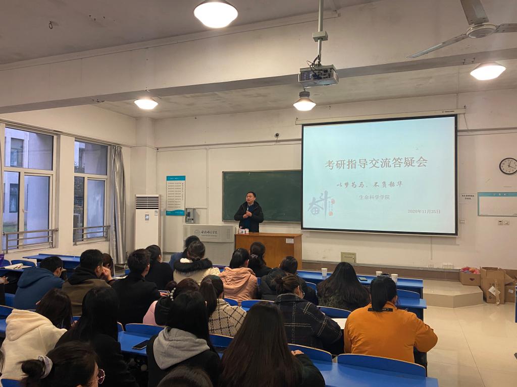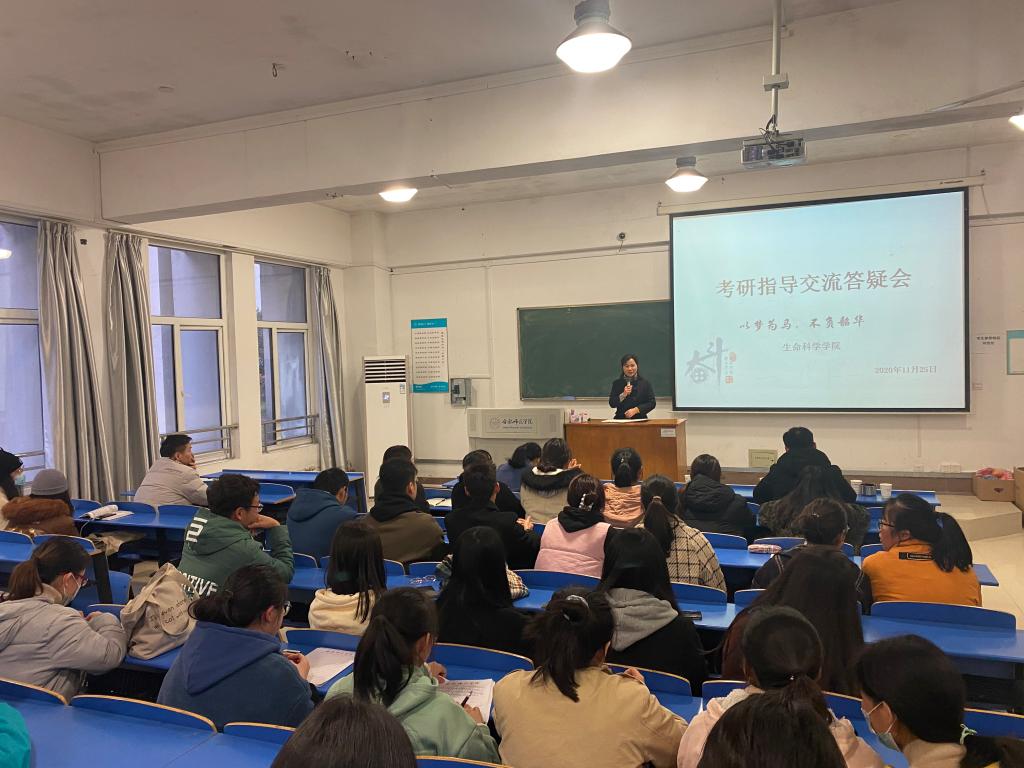 本网讯 为帮助考研员工答疑解惑,指导他们如何备战,缓解考前压力,提高成功率。11月25日下午生命科学公司于逸夫楼A106开展了员工考研指导交流答疑活动。出席该活动的有生命科学公司党委书记郭桃芬、副经理朱桂兰,教工党支部书记王占军、陈金武,教师党员程诚、王恒生四位老师主讲。指导交流活动由2017级辅导员黄伟丽主持,2017级100余名报名考研的员工参加。