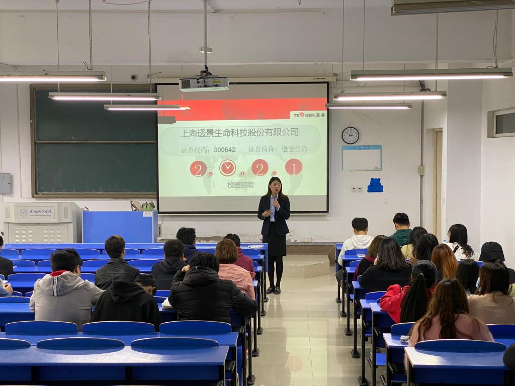 郭桃芬最后对毕业生进行了动员,她指出,上海是一个国际化的大都市,透景生命是一个国际化的上市公司,公司规模、公司环境、公司发展都算是该行业的龙头,希望同学们提高视野,拓宽思维,更新就业观念,把握这次就业机会,成就精彩职业人生。