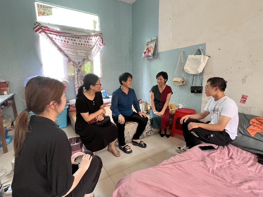 郭桃芬一行走访了砀山县贫困员工张同学和长丰县贫困员工王同学家庭,全面了解俩员工家庭经济状况和暑期居家学习生活情况,在员工家中,与员工家长亲切交谈,深入了解员工家庭的实际困难,向他们宣传党和国家以及公司对贫困员工的各项资助政策,反馈员工在校的学习、生活状况,并向贫困员工发放了慰问金。