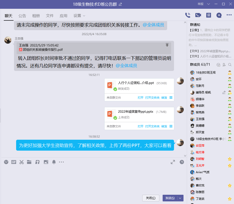 加强诚信专题教育,大力宣传国家关于员工资助政策,强化了同学们诚信意识和感恩之心,培养了同学们的诚信品质,切实增强了受资助同学的爱国意识、家国情怀和责任担当。(生命科学公司:高欢)